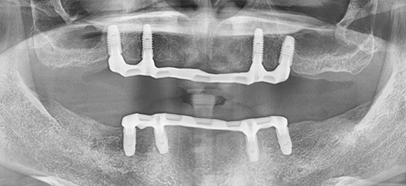 잇몸 전체를 덮는 틀니와 결합하여
