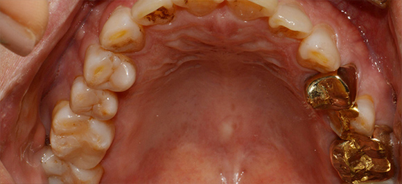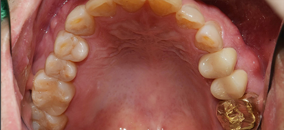 완전 틀니와 부분 틀니로 구분이가 빠진 자리 옆, 양쪽 치아에