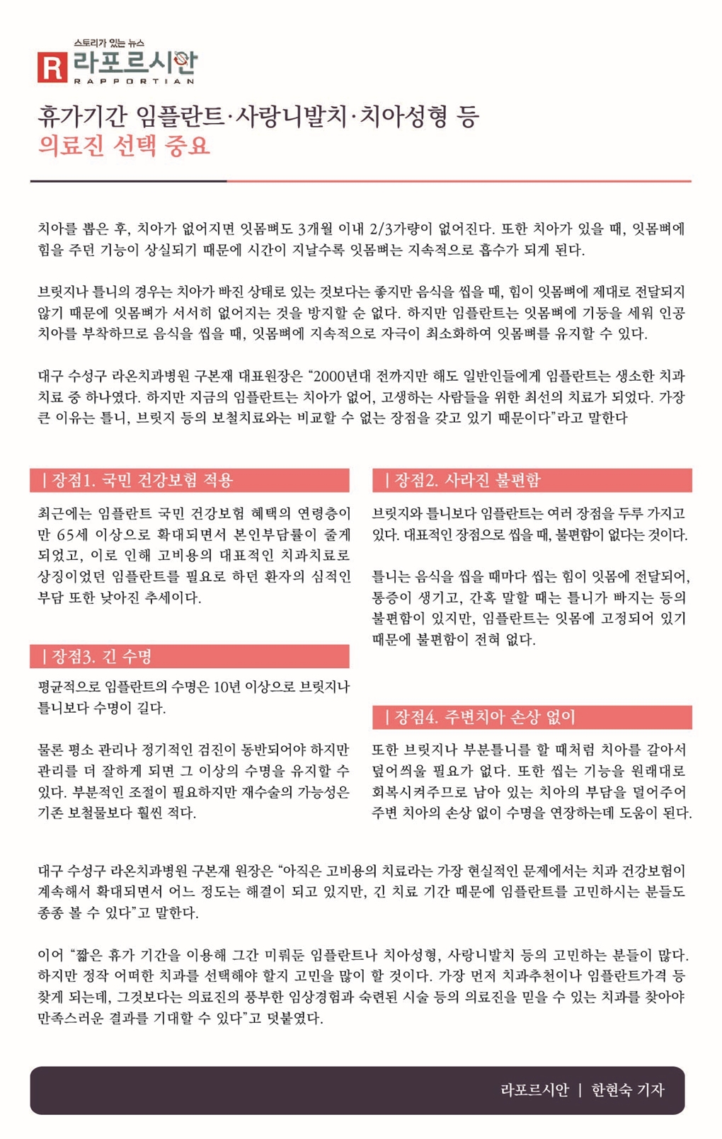 정확한 진단을 바탕으로 기능성과 심미성을 고려한 맞춤형